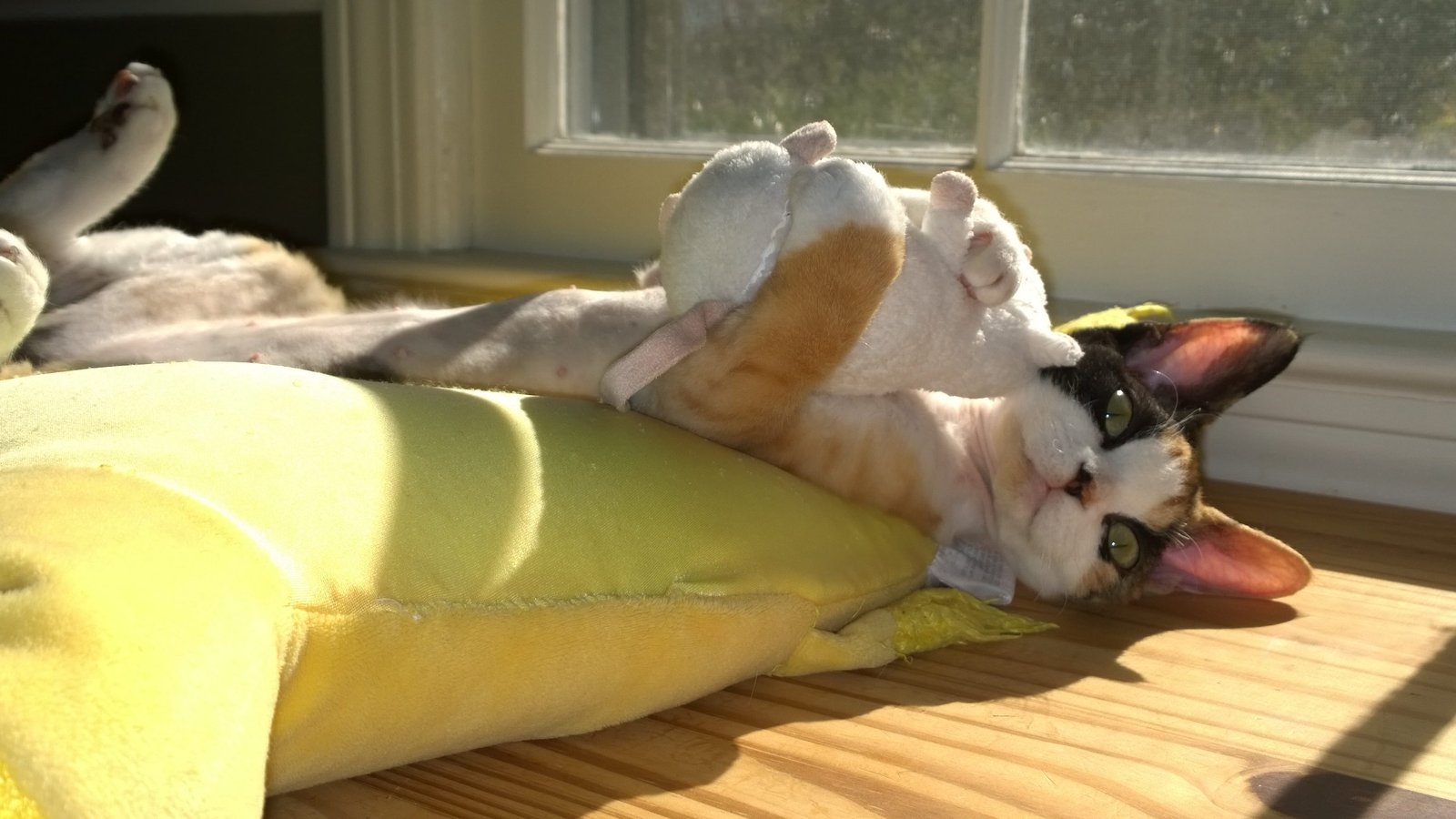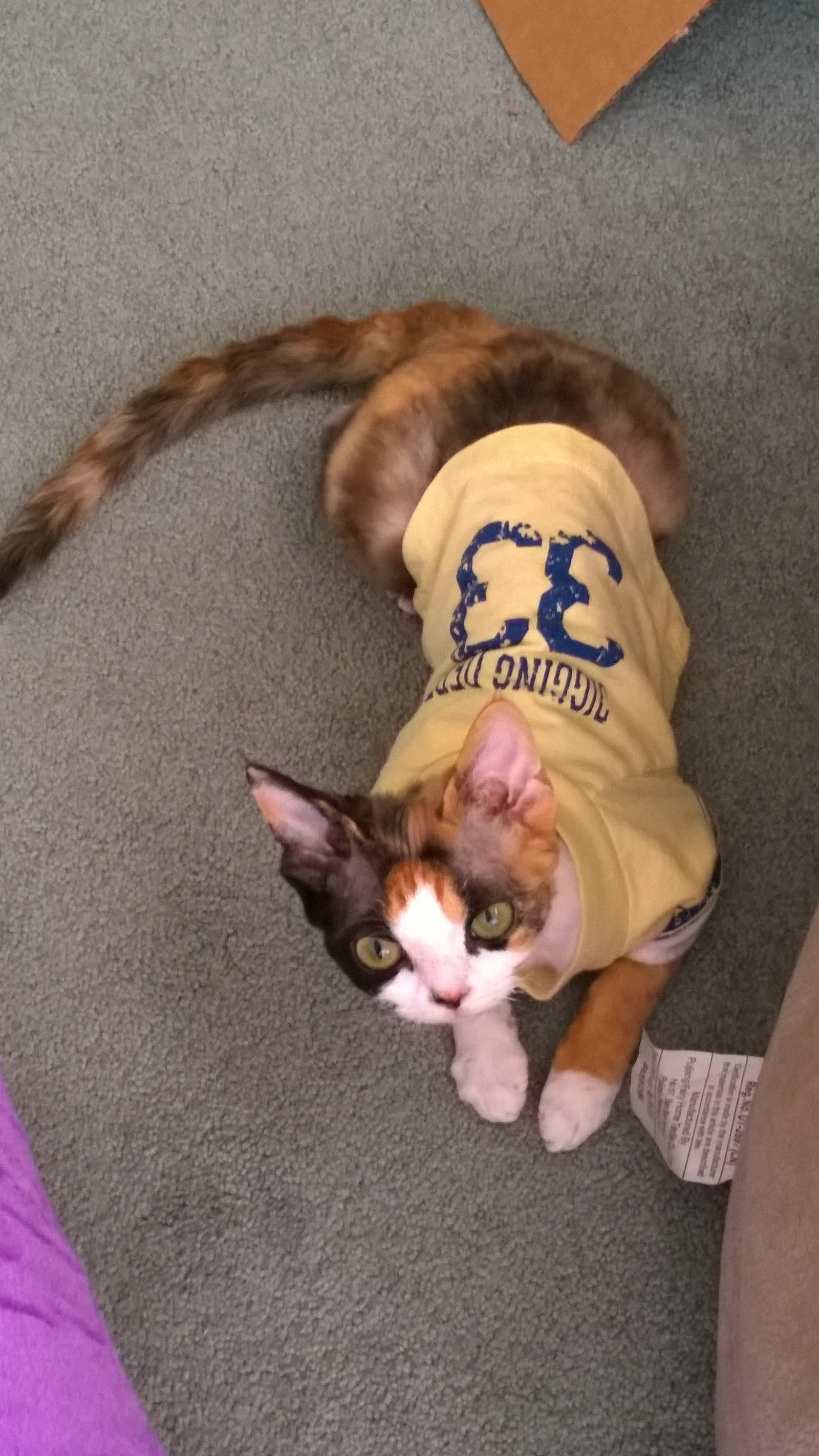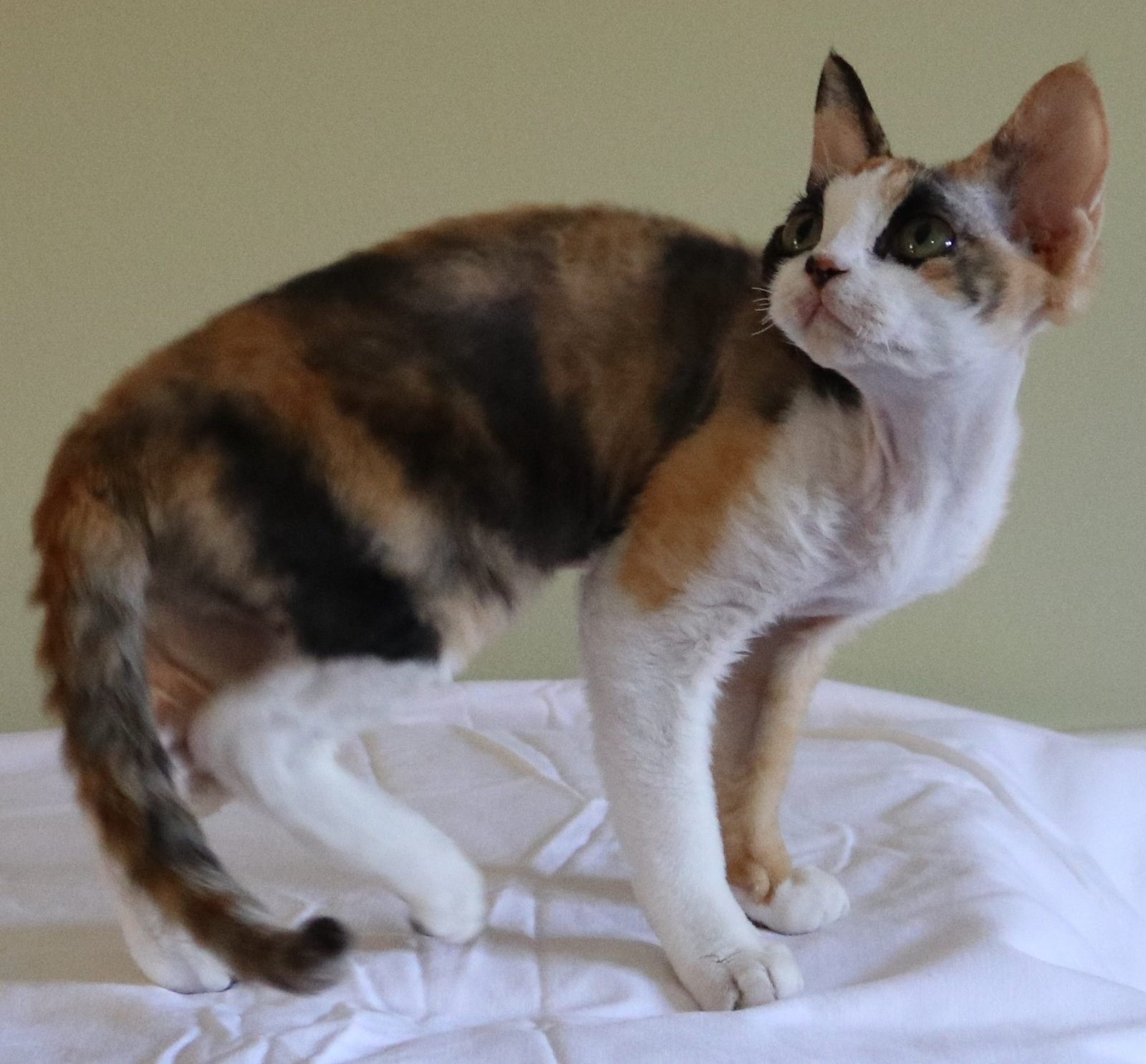 5 Devon Rex kittens in a cat bed